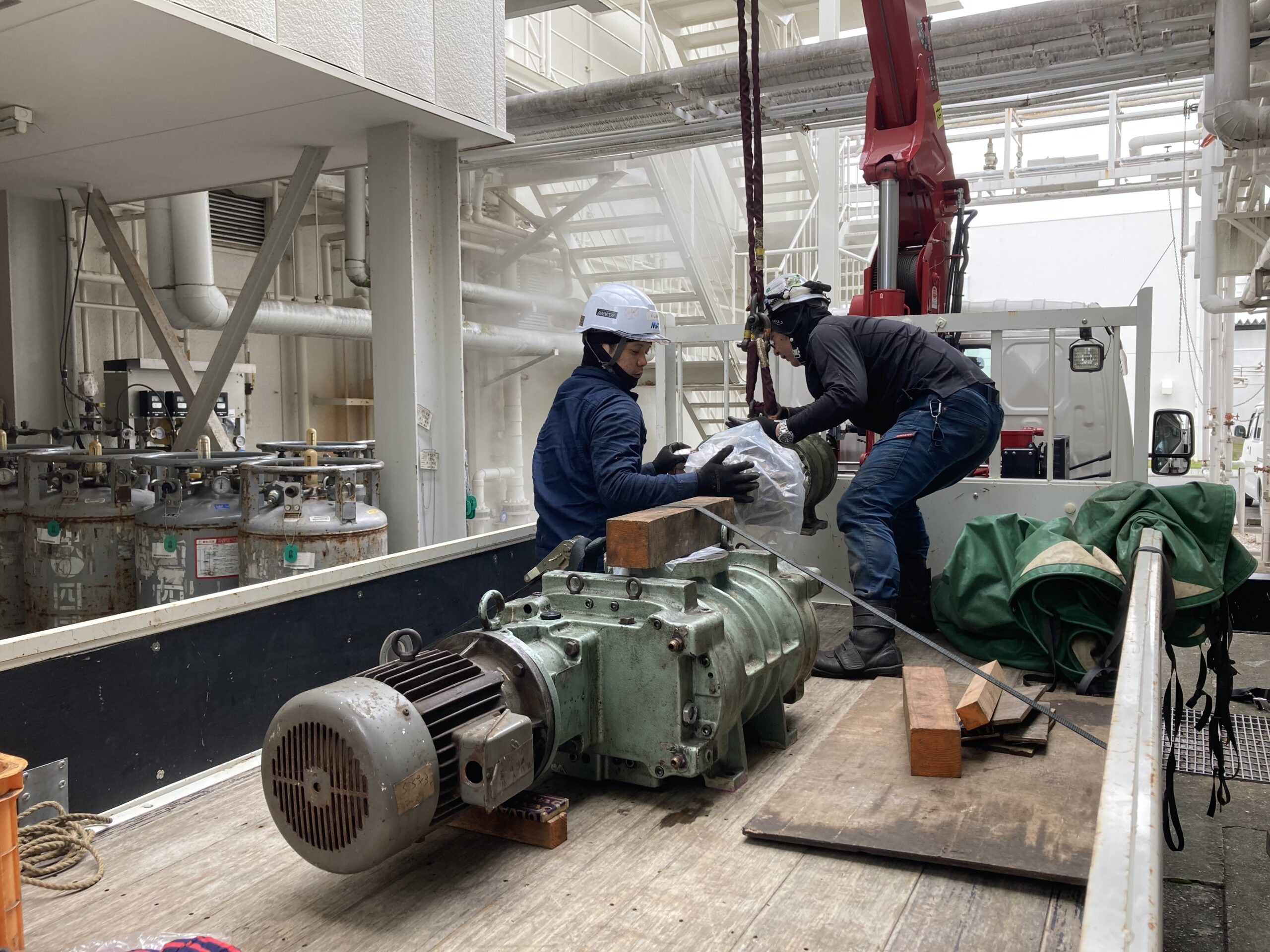 事業内容は、お客様の工場設備(各種ポンプ、通・排風機 他の回転機器)の整備、改善等を中心に、車両環境システム構築・更新及び関連機器取外取付等、お客様のトータルコストダウンに繋がる活動をすすめておりますが、これからの会社飛躍の為、新しい事業の開拓にも力を入れています。